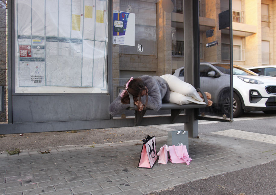 בפרזנטציה השלישית הצגתי סדרת צילומים שבה ברבי חוזרת מהקניון ונאלצת להשתמש בתחבורה ציבורית – היא מחכה בתחנה,ונראית מבולבלת ולא בטוחה איך להתנהג בסיטואציה היומיומית הזו. שיתפתי שהמטרה שלי הייתה להכניס אותה לסיטואציה יומיומית ופשוטה, ולבחון איך היא מתמודדת עם מציאות שלא רגילה אליה – מה שיצר רגעים של בלבול, ניכור וחוסר הבנה.
